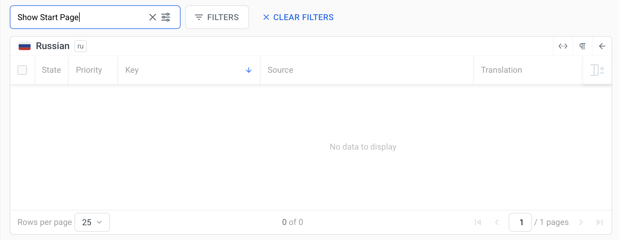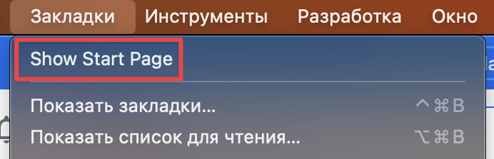 - Observe that "Show Start Page" text remains in English rather than displaying Russian translations