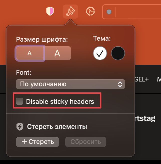 - Correct translation should be: " Отключить закрепленные заголовки"
