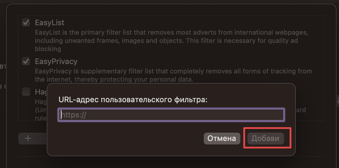 - Navigate to Парамерты > Конфиденциальность > Настройка Фильтров