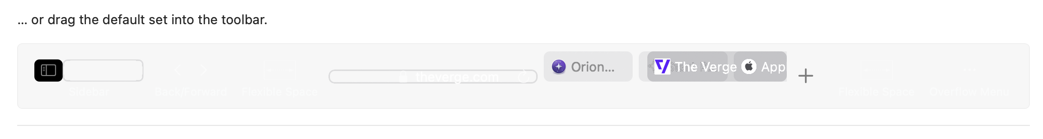 Also, see how weirdly renders "...drag the default set" on The Verge and new tab. Perhaps, better to use just one tab as a preview instead of copying all tabs into this small section: