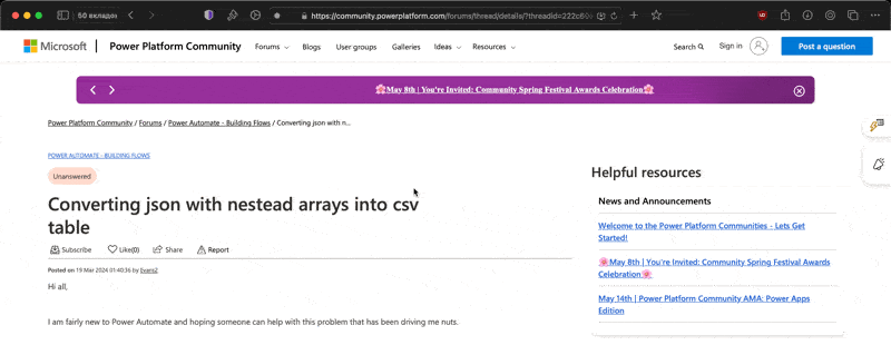 - Open a specific thread for instance https://community.powerplatform.com/forums/thread/details/?threadid=222c69e1-5c38-443b-bf7e-0a0d36261047)