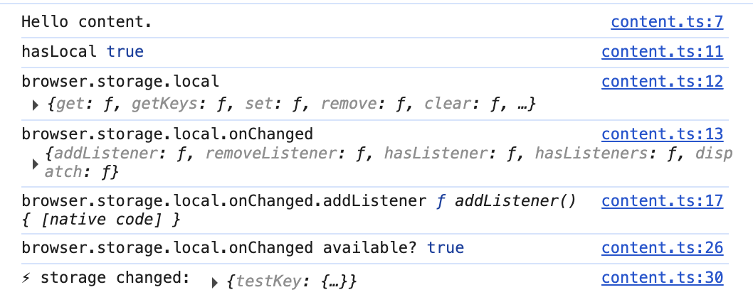 - open any url, Click the gray gear icon, and you will see the log from content script, which indicates the onchange callback is not triggered