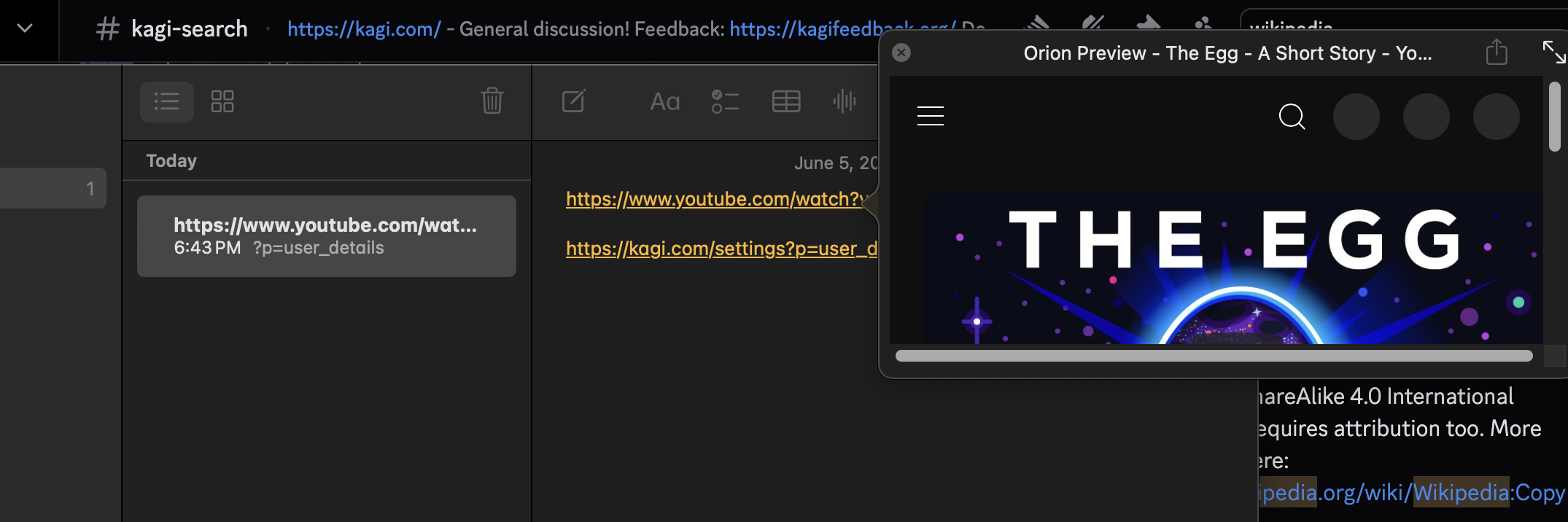 When you click on a youtube link (I cannot replicate with wikipedia or other sites) and the Orion preview shows up and you click to open it in a new tab the page is not able to scroll after about 1-2 seconds.