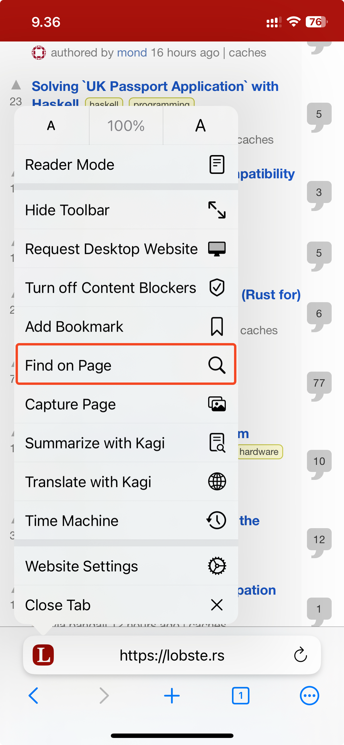 This is a very obvious and rather critical feature and exists in basically every other browser: search for / find matches to a particular word or string within the text on a page, highlight them, and scroll them into view instance by instance.