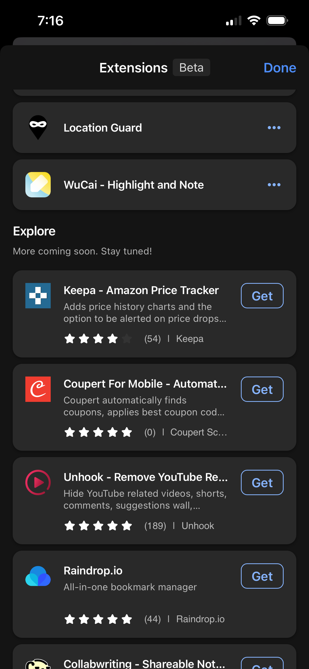 Browsers like Microsoft Edge already have a list of popular extensions on mobile. This feature already exists on Desktop, but a list of popular extensions on mobile (of course only extensions with supported APIs) could make it easier to find well-know extensions. But it especially looks a lot more professional.