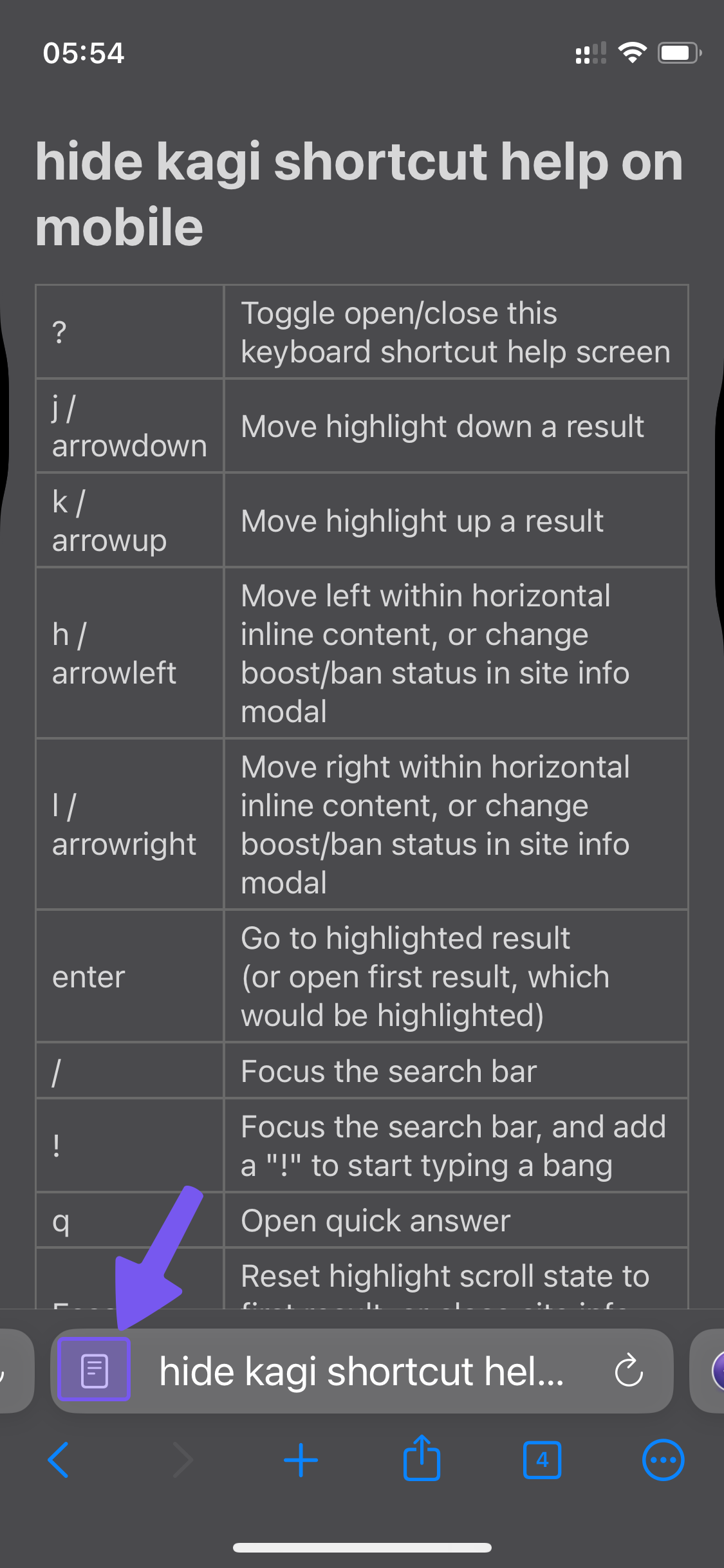 With every search the kagi shortcuts help pops up and covers the entire website.