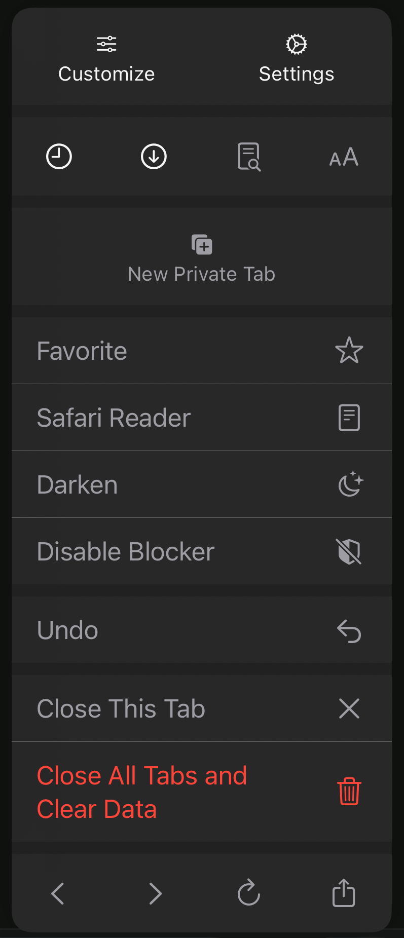 The iOS/iPadOS version of Orion has an analogous menu item, “Close Tabs & Clear Data”.