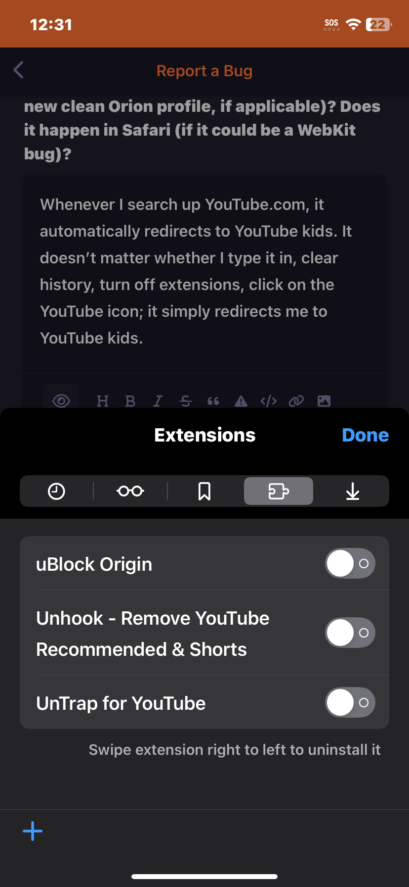 Whenever I search up YouTube.com, it automatically redirects to YouTube kids. It doesn’t matter whether I type it in, clear history, turn off extensions, click on the YouTube icon; it simply redirects me to YouTube kids.