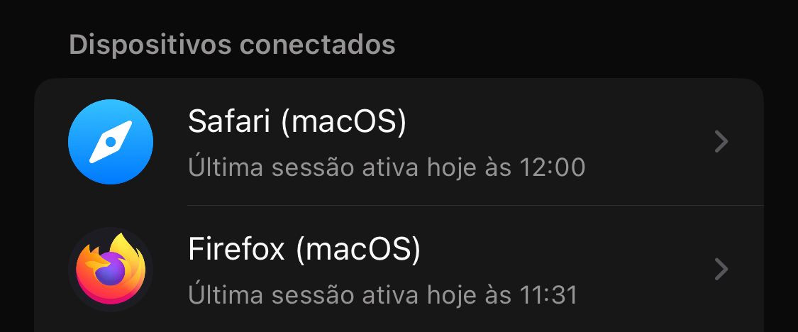 Edit: The screenshot is in Portuguese, and it says "Connected devices" with the list of browsers and last sessions.