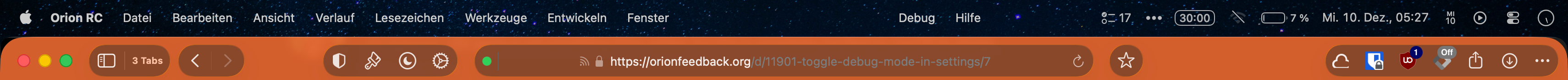 Can you please share full screenshot for top bar from Safari and Orion, so that we can compare and try finding possible solution.