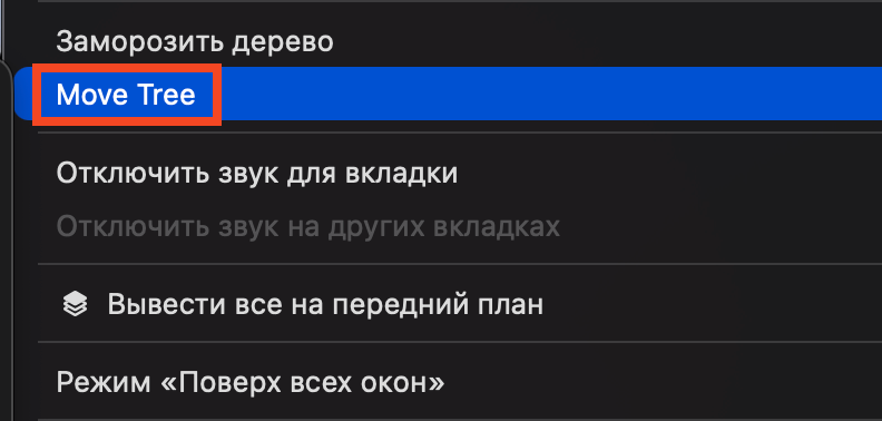 The menu item displays as "Move Tree" (English fallback text)