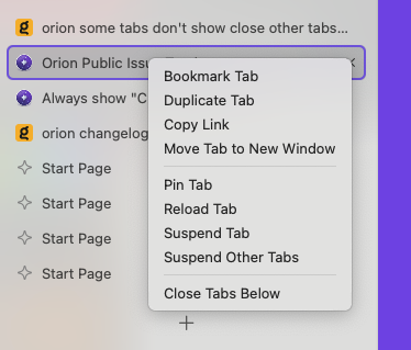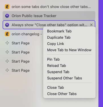 Similar to https://orionfeedback.org/d/10053-always-show-close-other-tabs-option-with-more-than-one-tab-open, but I don't think that it's related? That one seems like intended behaviour, but mine sounds like a bug.