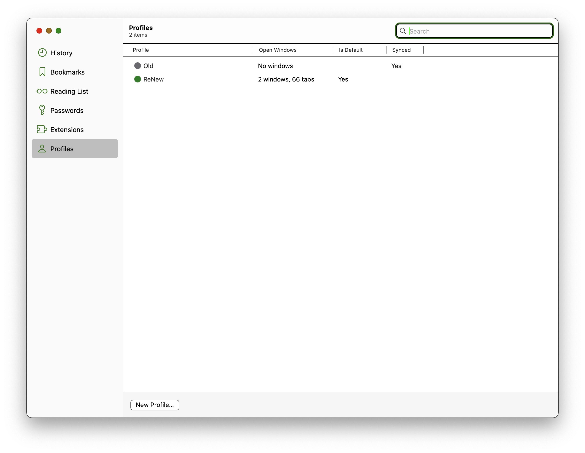 (Also, for tidiness, I'd prefer to delete the no-longer-used/corrupt previous default profile, which I renamed "old". This, however, does not seem possible.)