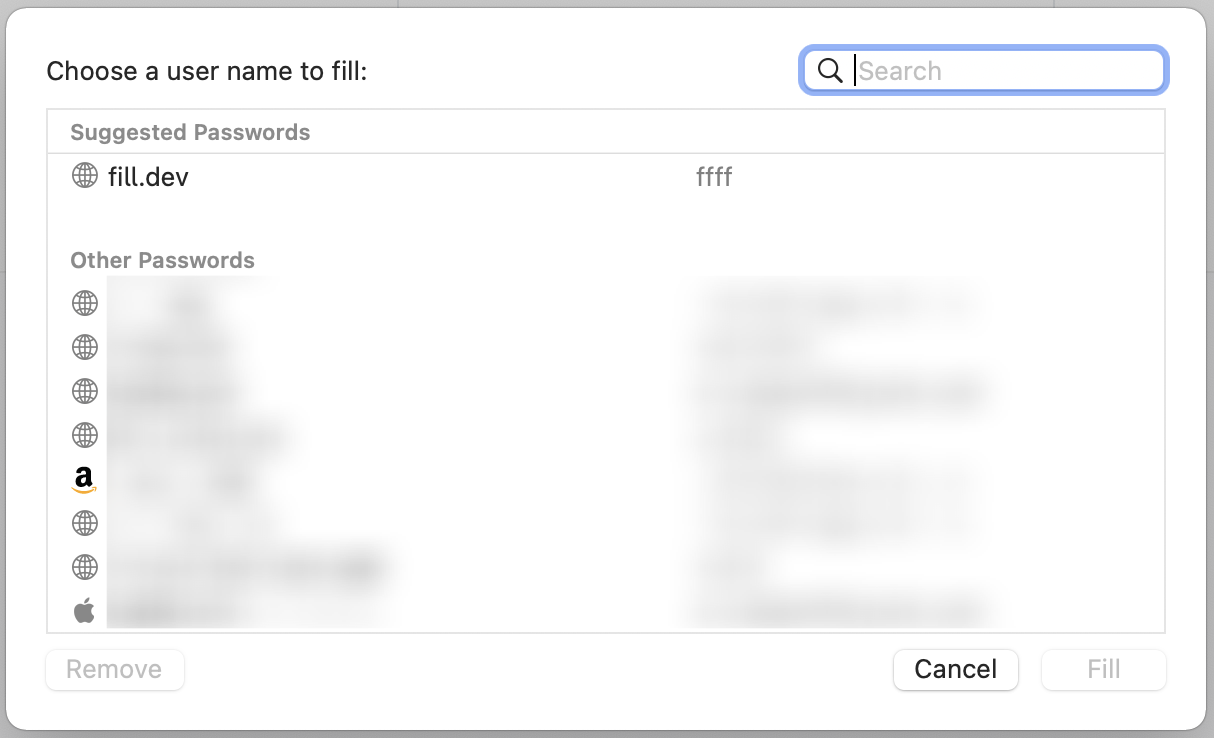 eirk add a search bar to the other passwords prompt, that is accessed by clicking "Other Passwords..." Orion: Safari: