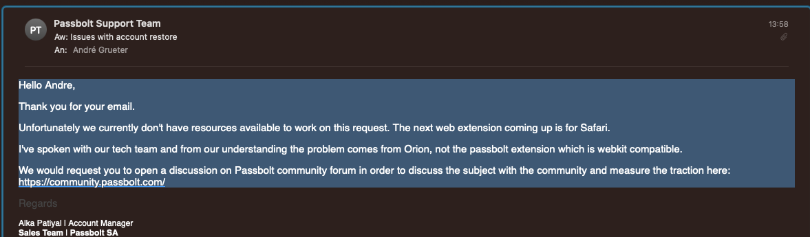 IT Guys in Central Europe does not push their Credentials to Cloud. Passbolt stand in terms of security above Bitwarden etc, so It would be nice, to get that working for Orion / Orion+
