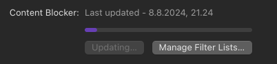 In its current form the iOS content blocker filter list update feature (added in the latest testflight build) does not communicate to the user how the update is progressing. This can be confusing and/or annoying for the end user as it is not clearly indicated what is happening. A simple progress bar or a percentage counter would go a long way in mitigating the potential frustration caused by unknown update length.