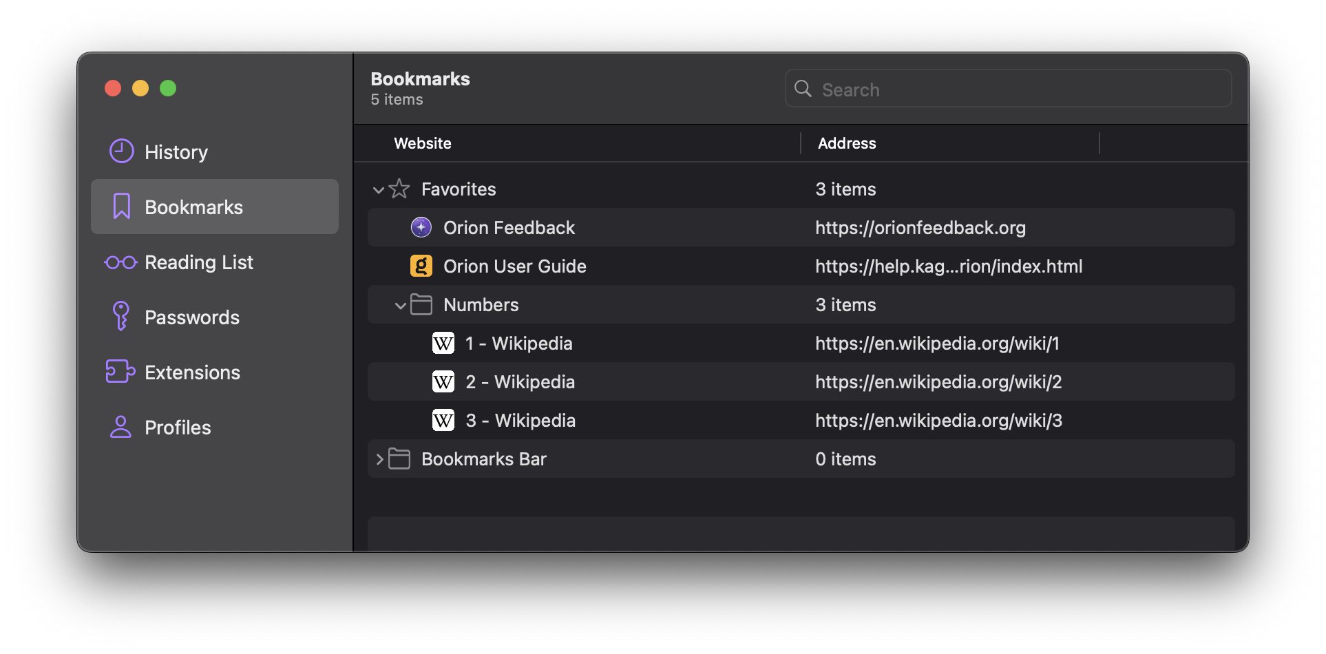 Orion just displays the contents of the folder. (shown at t=0:03)