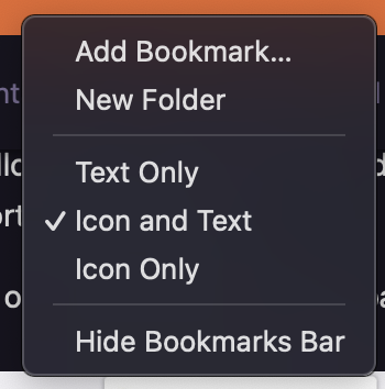 Possibly I have missed a setting, but I use a site's favicon (alone, no text) in the bookmarks bar in other browsers. It's quicker to recognise and click on than reading text, and I can fit more bookmarks into the bar. I stopped using Safari when they stopped allowing this, and now they do allow it again. If Orion would support this, I would prefer it over Safari given its support for extensions.